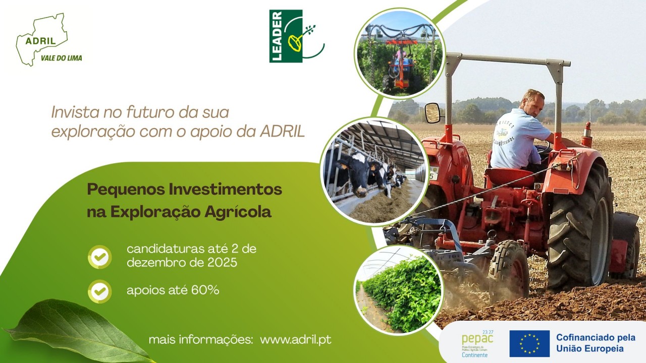 Estão abertas, entre 1 de outubro e 2 de dezembro de 2025, as candidaturas ao programa Pequenos Investimentos na Exploração Agrícola, promovido pela ADRIL – Associação de Desenvolvimento Rural Integrado do Lima.